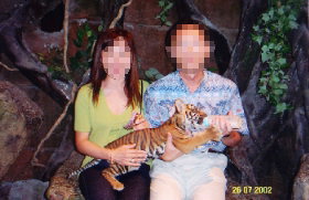 小象やトラと写真を撮ってもらう商売のためか、 劇場ではカメラを預けなければなりませんでした。 トラの赤ちゃんと写真を撮ってもらいましたが、 よほど空腹にされているのか、ミルク一筋でした。 |