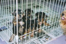まるで牢獄。いつも前方で吠える子は吠え、後方で 静かにしてる子は静か、性格ですね。 |