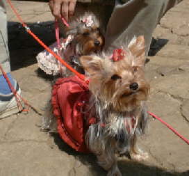 エディママのジュディちゃんとセーラちゃん。 オフ初体験のセーラちゃんはパパの足元に 逃げこんじゃいました。 |